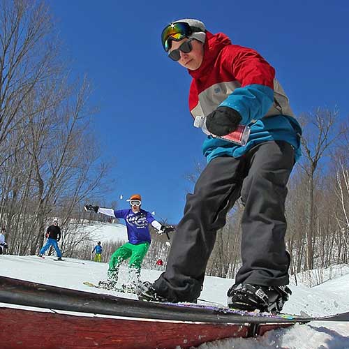 Mt. Dufour’s chalet is located directly at the base of Main and close to the quad lift. The chalet is home to the ticket booth, ski rental shop, a large deck and the following services: